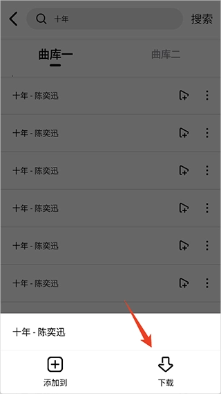 2、搜索时可以通过音乐名字将歌曲搜索出来,搜索出来后点击旁边的功能图标