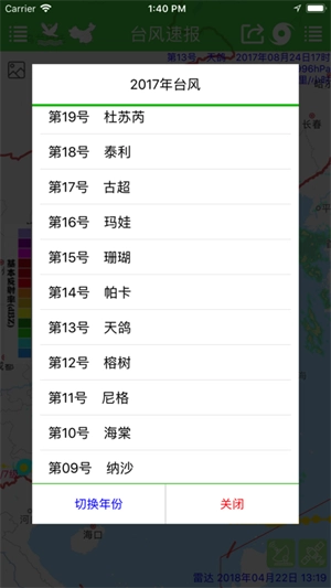 2、会弹出一个选择框,你可以在这里查询以往的台风记录。
