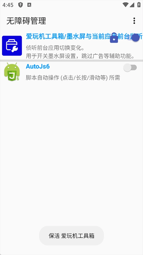 4、这款app默认开启无障碍保活服务,该服务能让应用程序在后台持续运行,避免出现掉线情况。