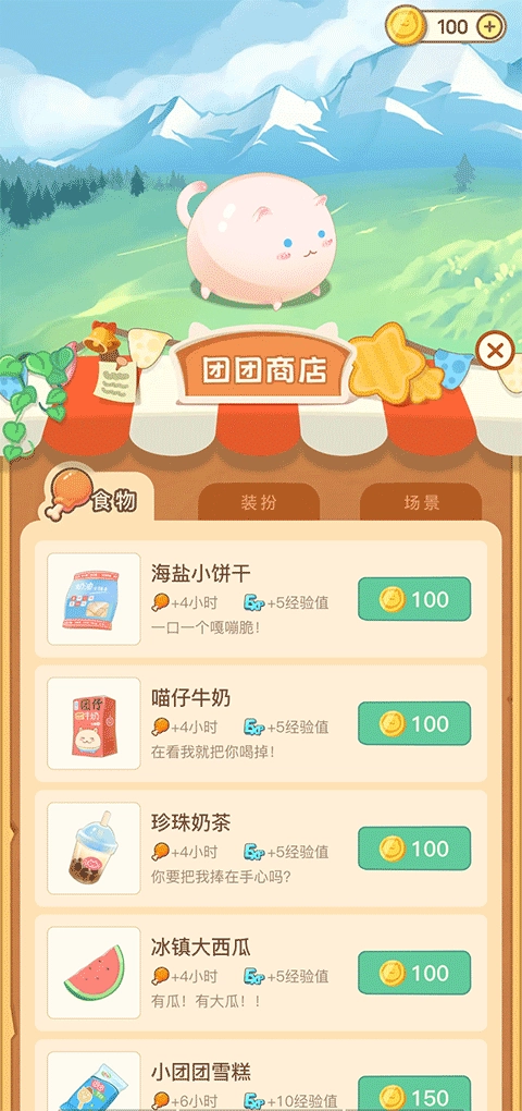 1、在主界面点击右上方的“商店”使用金币购买食物;