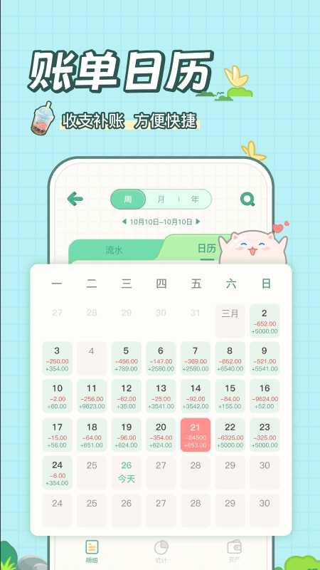 每天坚持记账、签到可以获得不同的奖励道具,使用道具犒劳小团团,它会开心的陪着你,帮你记录和分析每一笔收支。用手指戳戳还能互动喔,更多好玩功能等你来发现;