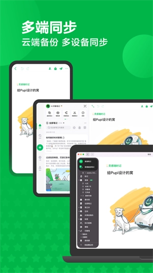 2、同步所有设备,更换手机、手机丢失都能轻松找回笔记内容;