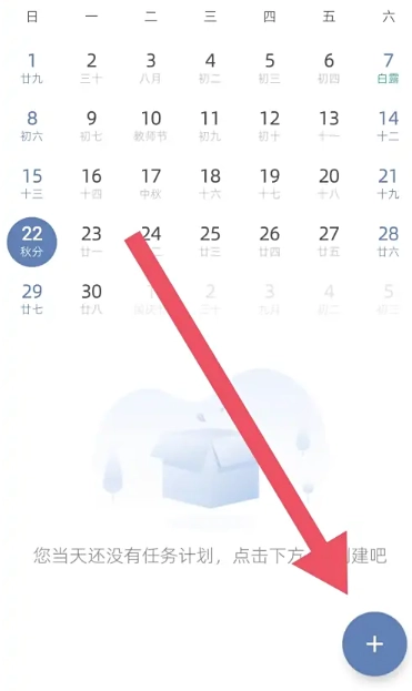 2、进入日历页面,点击右下角【+】