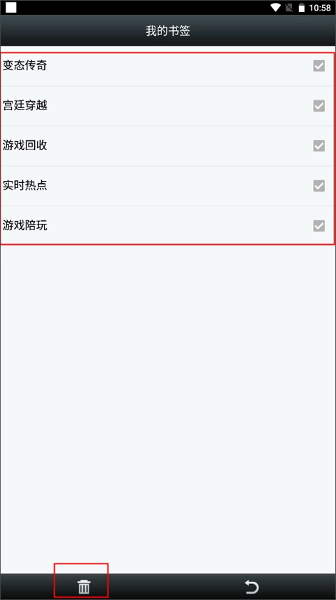 (2)勾选你要删除的书签,最后点击下方的垃圾筐图标就可以了。
