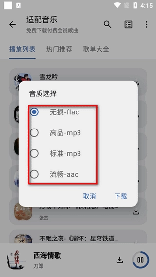 还支持下载,多种音质选择下载需求。