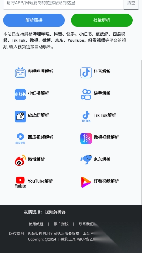 你提供的文本存在表述错误,推测“狗”可能是某软件名称代称,以下是纠正错误并优化表述后的内容: 该软件是一款功能强大的免费视频工具,覆盖B站、抖音、小红书、快手以及西瓜视频等多个热门平台。这款工具能够一键获取无水印的高清视频,用户只需简单地把视频链接复制到软件中,它便会自动解析并快速处理。这种操作方式既简单又便捷,大大节省了用户的时间和精力,让用户能够轻松获取到自己喜爱的视频内容。