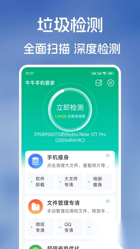 牛牛手机管家,作为一款综合性智能管理工具,融合了手机清理、安全防护、性能加速以及隐私保护等多项功能,能满足多种手机型号用户的使用需求。借助深度扫描、智能优化与实时监控等技术手段,有效解决诸如手机卡顿、内存不足、病毒威胁之类的问题,助力设备始终保持流畅如新的运行状态。