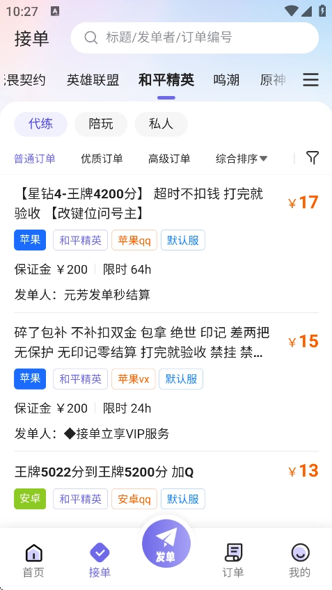 2、具备丰富的订单资源,给代练者创造更多盈利契机;与此同时,还能助力玩家迅速寻觅到适配的代练或陪玩人员。