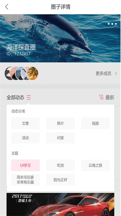 圈子创建与加入功能:其核心在于助力用户打造专属圈子,可对主题、简介及标签进行设定,以此吸引志同道合之人加入。此外,还配备圈子搜索与推荐功能,使用户能够依据自身兴趣,寻觅并加入诸如“二次元”“拾柒宠物”这类心仪的圈子,进而拓宽自身社交圈。
