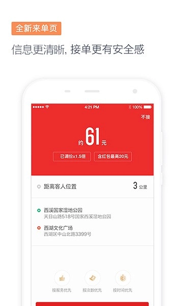 3、全程语音导航,等太久被放鸽子,还有补偿订单推送,体贴关怀,我们懂你。