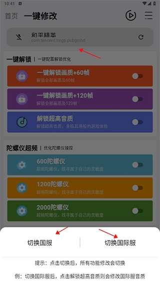 1、进入本站首页后,点击上方的“一键修改”和“一键解锁画质+120帧”(在开启前需要给软件授权)