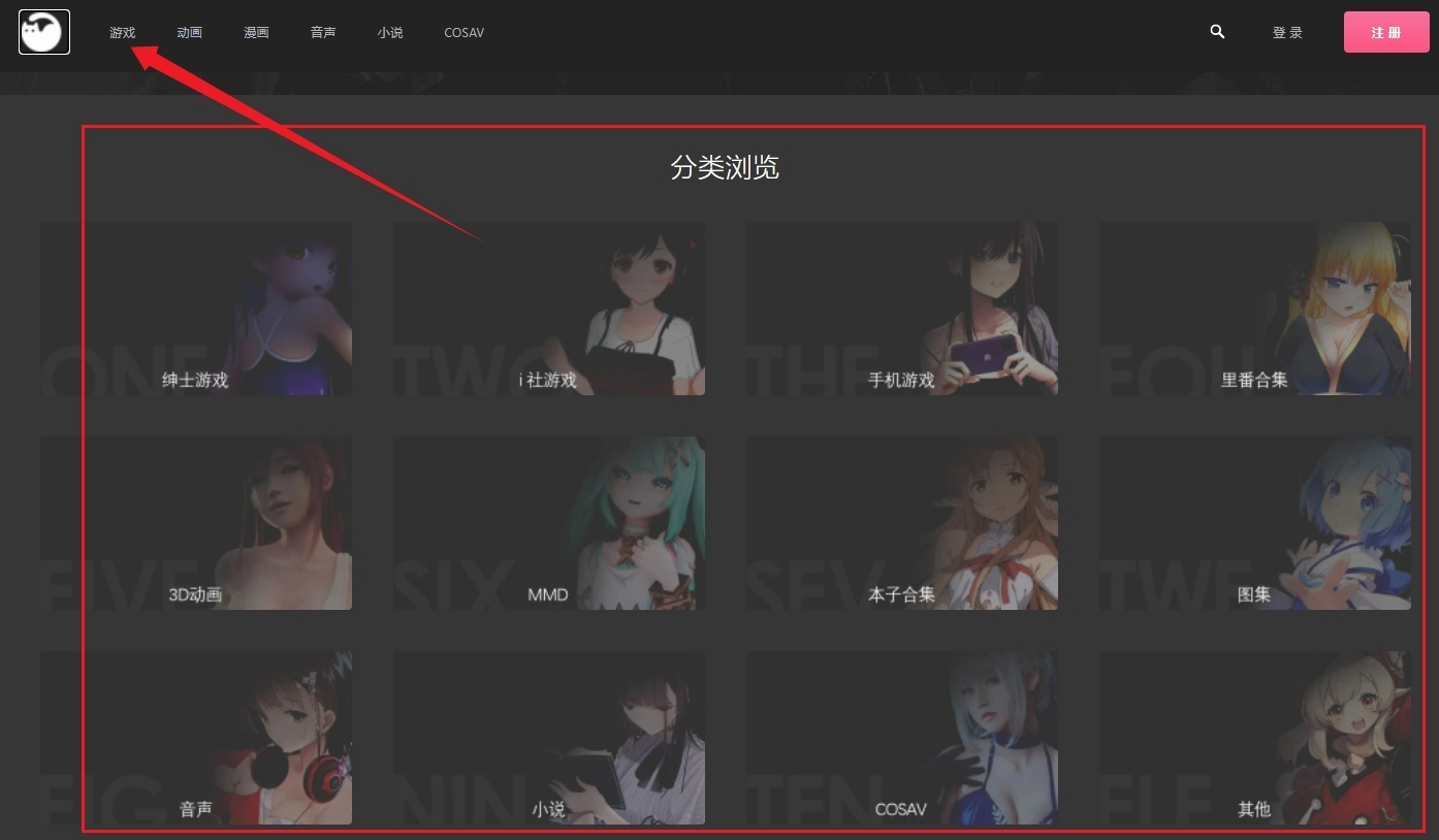 2、在首页上方点击【游戏】选项,即可浏览和选择多种类型的游戏资源。