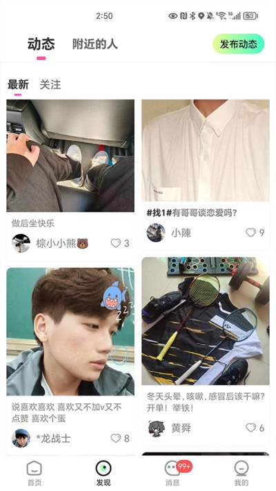 进入发现页面,你能看到他人分享的各类精彩动态,在浏览这些动态的过程中,或许就能发现令你心动的对象。