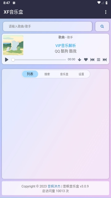 昔枫音乐盒免费版是一款极为出色的音乐播放工具。借助这款应用,你能够获取全球的音乐资源,尽情聆听热门金曲与最新发布的音乐佳作。这里所有音乐皆为高清无损音质,整合了全网最为火爆热门的音乐资源,无论何种类型的歌曲都一应俱全,充分满足不同年龄段用户的需求。