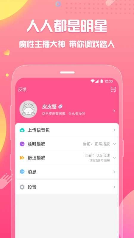 2. 汇聚众多热门主播、明星,以及影视、动漫人物的语音,支持角色扮演,风格魔性搞怪。