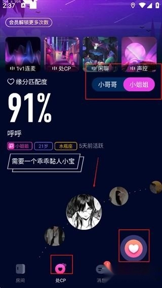 4、也可以点击处CP板块,看到喜欢的点击爱心