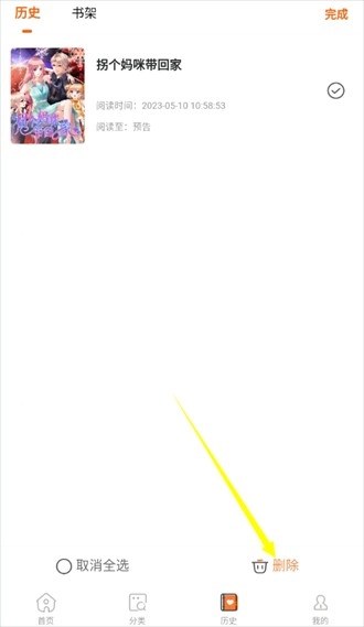 3、点击后仅可进入编辑页面,选择想要取消收藏的漫画点击后面的圆框;