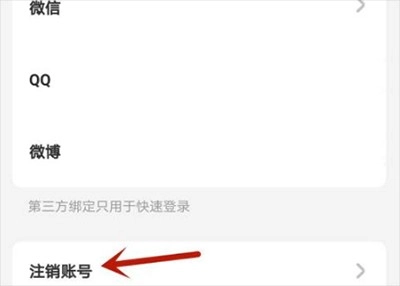 3、向下滑动屏幕,找到“注销账号”选项,点击