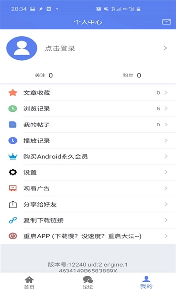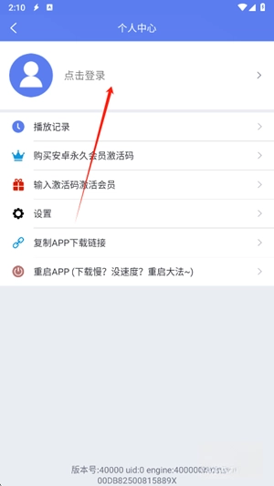2、 启动后进入“我的”页面,点击登录选项。