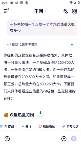 输入内容或者随手一拍热量识别。