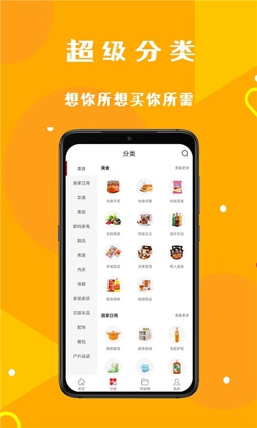 商品分类清晰且支持搜索功能,快速找到所需好物。