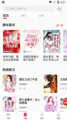 书城界面的功能是系统自动为我们推荐优质书籍以供阅读,其中涵盖了四大排行榜。