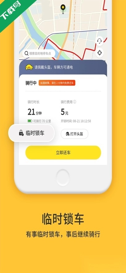 临时停车:在使用车辆的过程中,点击界面上的“临时停车”按钮,就能暂时将车辆锁住。