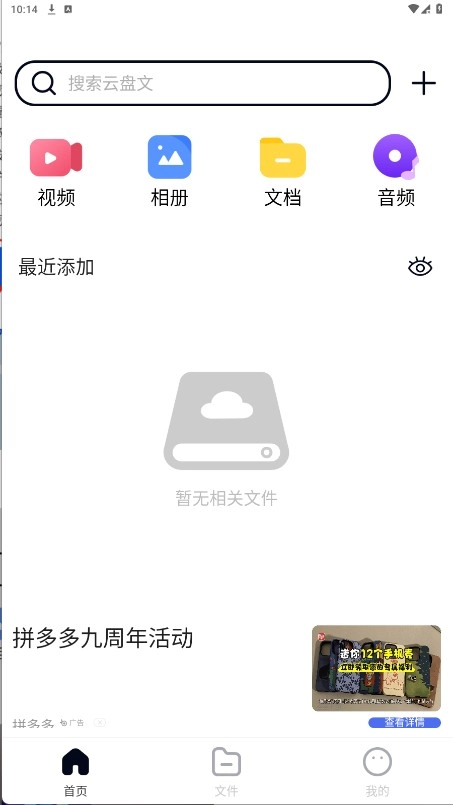 打开软件后,视频、相册、文件、音频以及最近添加的文件都会直接呈现在眼前。