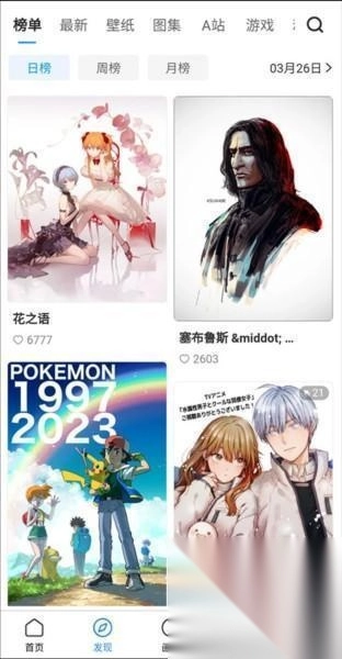 首先我们可以借助榜单、分类、搜索等途径来【找到心仪的图片】。