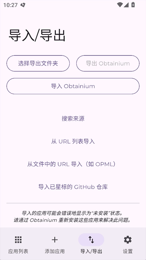 因Obtainium需从国外开源平台获取应用更新,或许会出现网络访问方面的问题。务必保证设备可以正常访问这些平台。