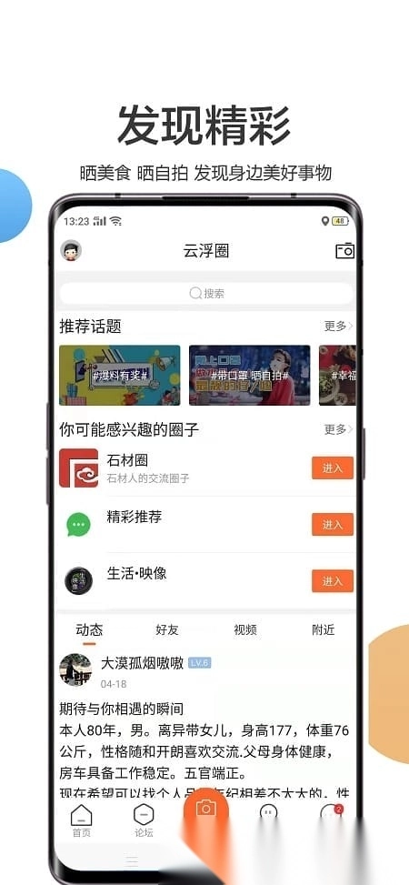 加入你感兴趣的社交圈子,在同城结识新朋友其实很容易,能帮你拓宽人脉,让社交生活更加多彩。