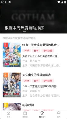 5、排期表是根据本周热度将动漫自动排序。