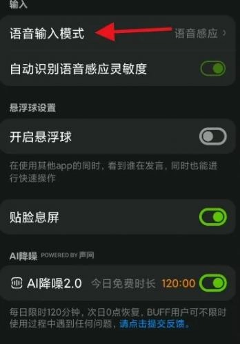 3、进入语音设置点击语音输入模式按钮。