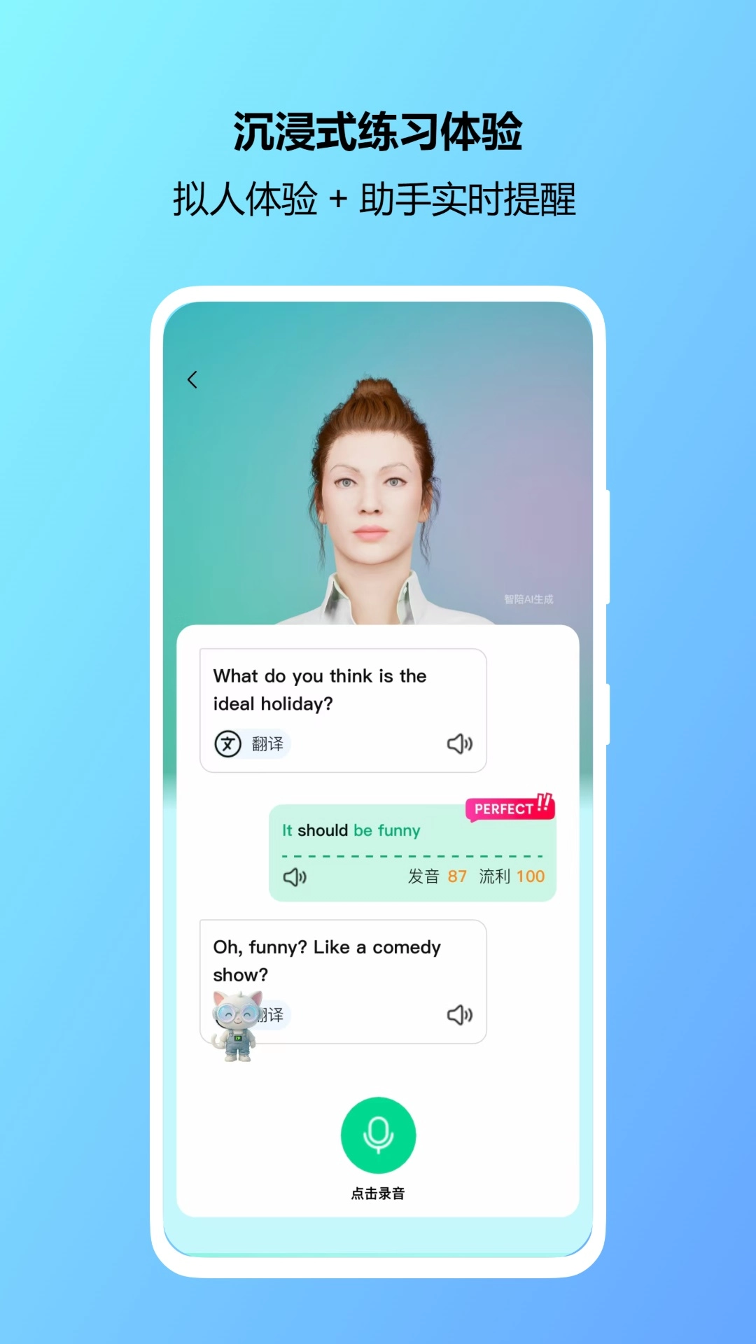 别再陷入口语无效练习的困境,也不必因社交恐惧而却步,现在就开启沉浸式的互动口语练习新体验。智陪语伴,助你勇敢开口、掌握表达技巧、说得自信出色!