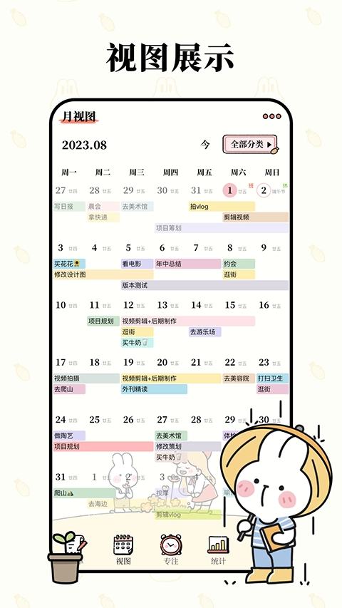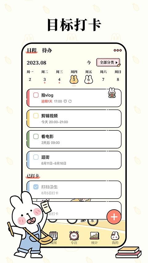 我们设计了可爱直观的月视图功能,能清晰展示每月的任务安排与打卡记录,帮助用户轻松掌握长期目标的进度。