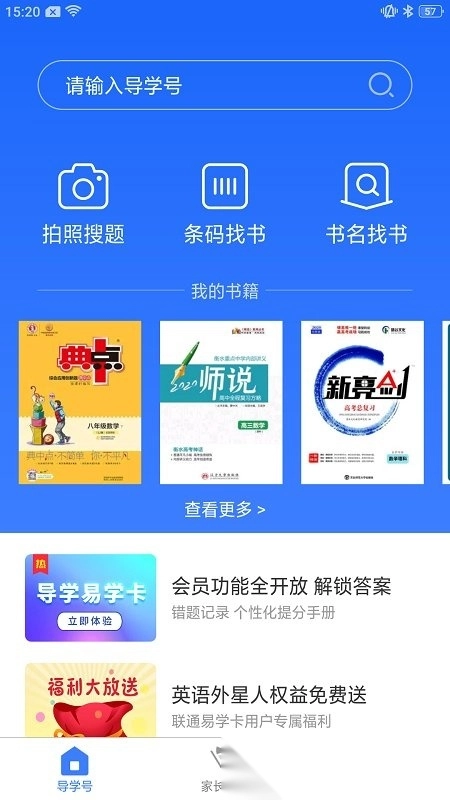 导学号搜题:通过按键输入或语音输入导学号,难题能立即得到辅导。