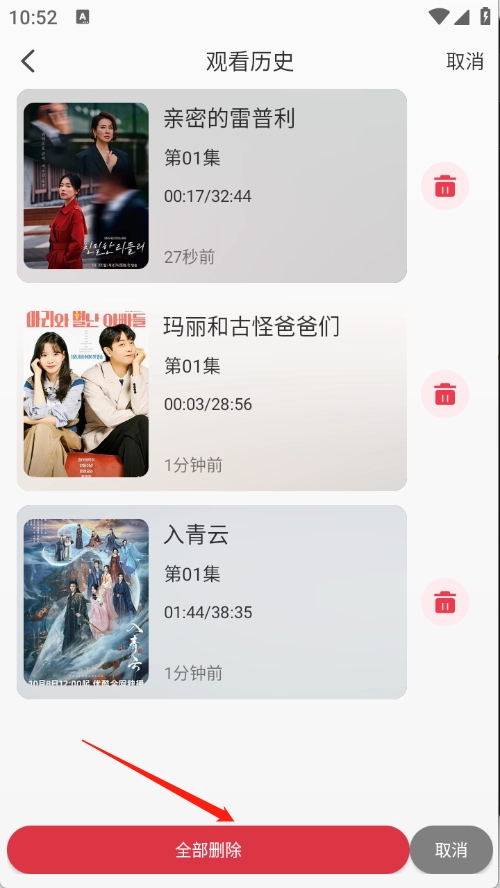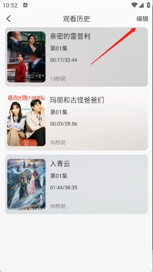 就会出现全部的观看历史,点击右上角的“编辑”。