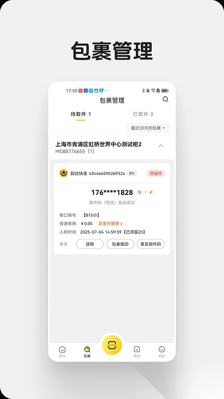包裹投递后的状态会实时同步更新,收件人能第一时间收到取件提醒。