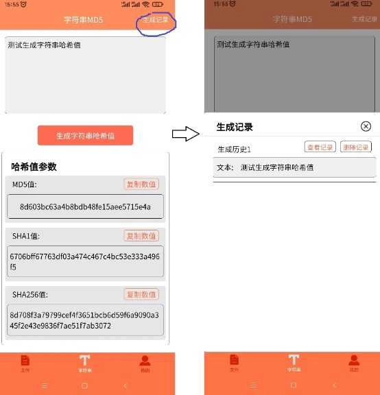 点击底部导航栏里的“字符串”选项,即可进入字符串哈希生成页面。