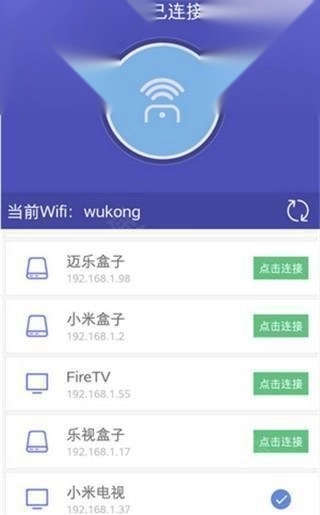 2、如果搜索到相关设备,就会看到下面的界面(支持连接多个设备),点击对应的设备名称即可使用悟空遥控器。