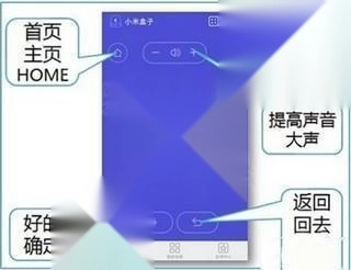 3、小编就以小米电视为例,点击“小米电视”,可以看到软件的主界面,非常简洁,常见的选择键、确定键、菜单键、主页键、返回键、音量键,下方是功能选择栏,右上方分别是切换手势遥控器和更多设置按钮