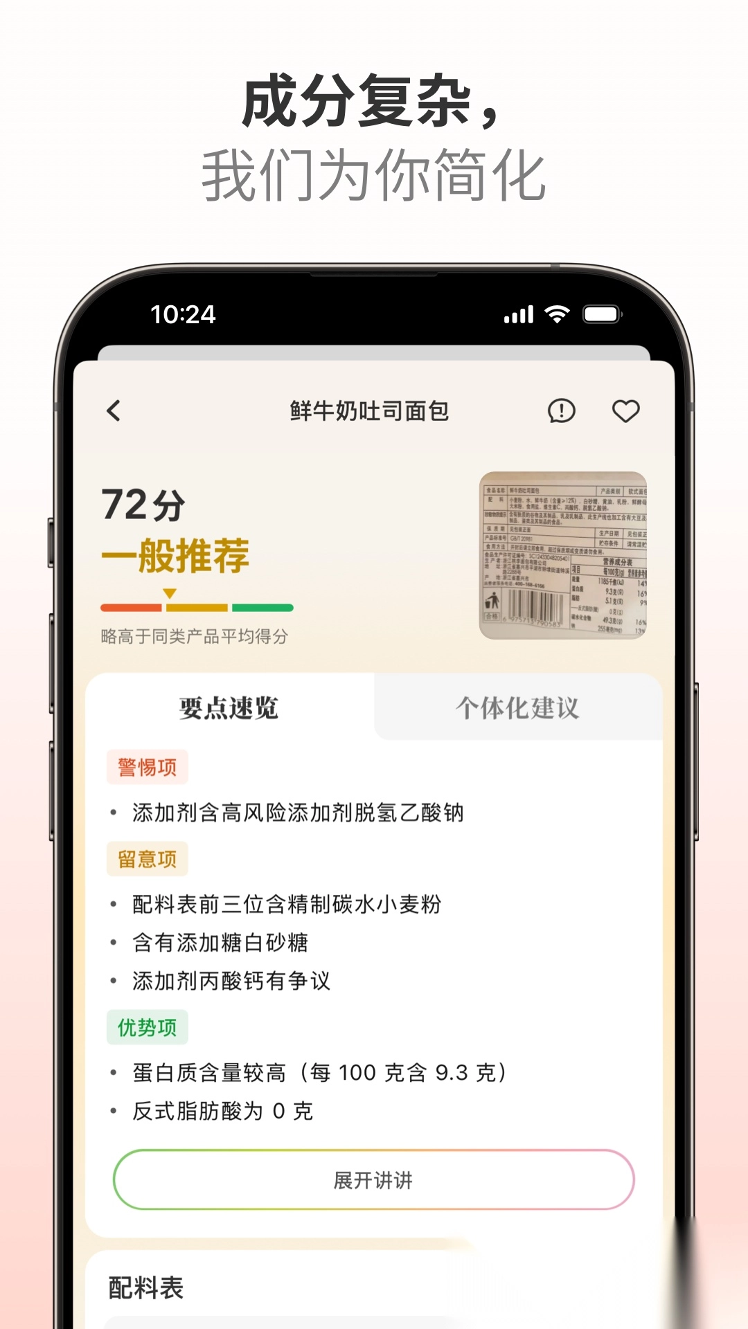 用手机拍下食品配料表,这款应用就能给出详细解读,帮你弄明白里面都有哪些成分,以及哪些人群适合食用。