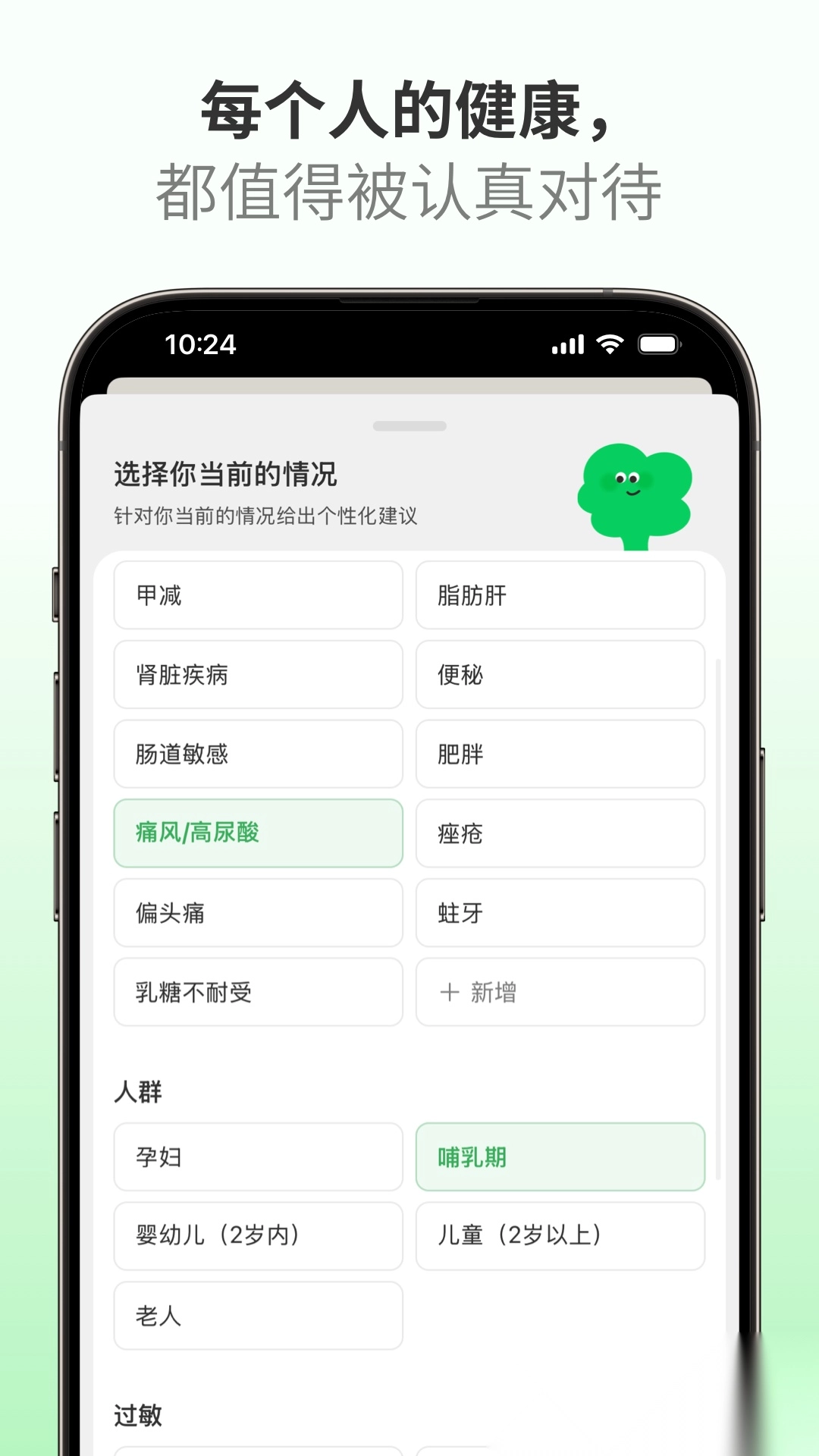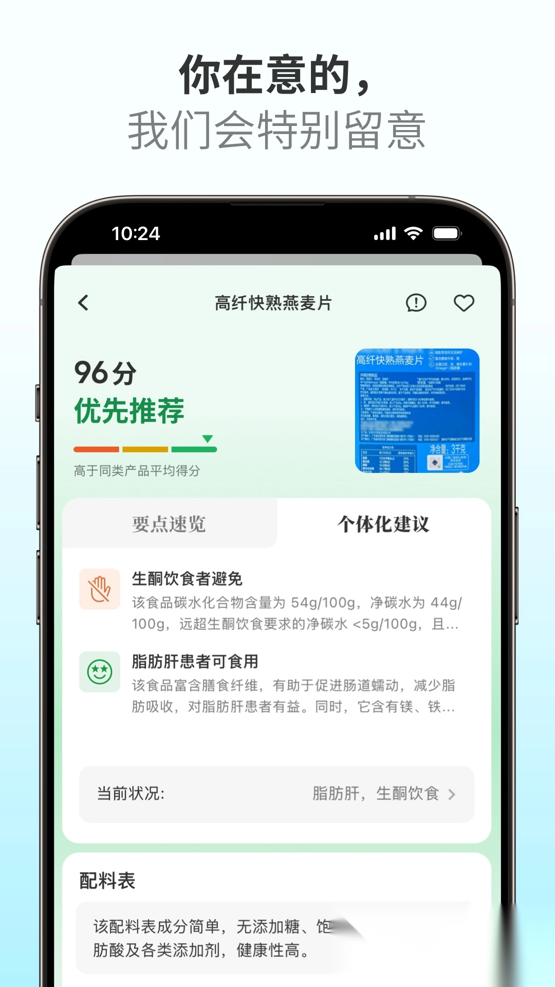 个性化风险提示功能支持用户根据自身情况设定专属状态,比如麸质过敏、痛风病症,或是减肥、增肌等饮食目标;该功能适用于患有特定疾病的人群、易过敏体质者以及追求健康饮食的用户,能帮助他们更精准、更安全地挑选食品。