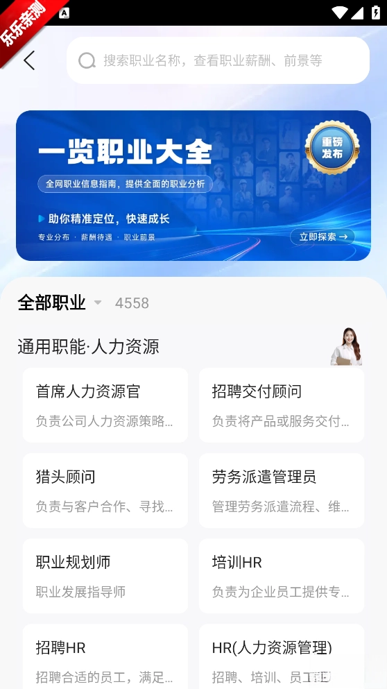 软件还提供了职业大全的板块供用户使用