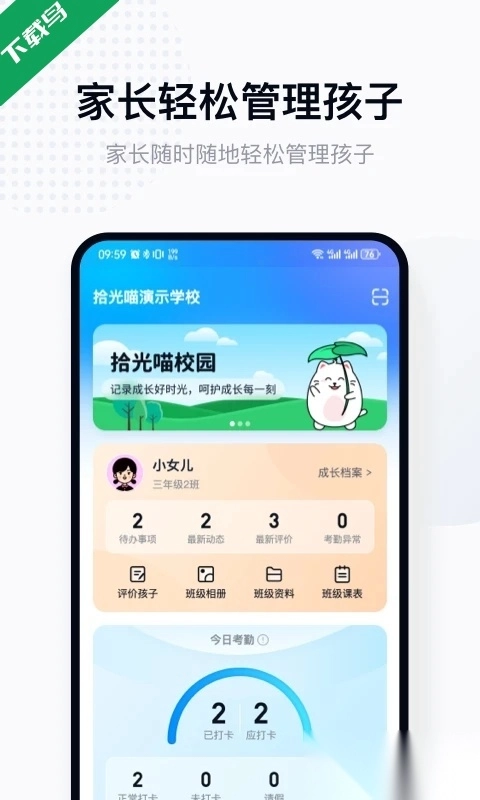 拾光喵校园是一款聚焦家校协同育成的移动应用,它构建起家庭与学校间的沟通纽带。家长可随时了解孩子在校的学习动态与日常表现,和教师保持顺畅沟通,以此缓解学生的学业压力,推动家校双方更紧密的配合,携手守护孩子的成长过程。