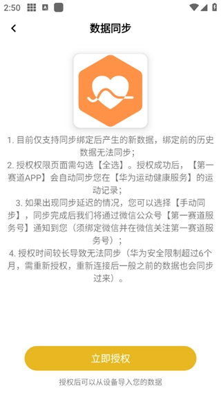 需要对第一赛道进行授权操作,如此便能实现数据同步,烦请点击“立即授权”按钮。