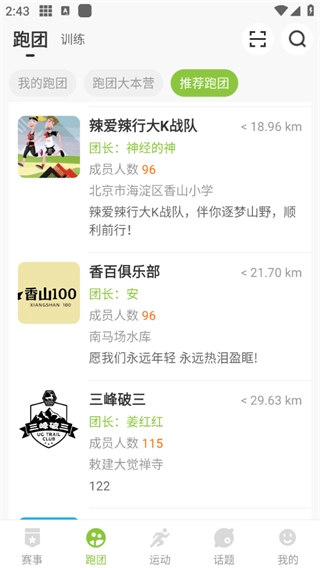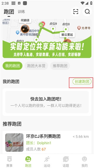 【跑团管理】你可以创建跑团,也能加入跑团,和身边的朋友们一同跑步、一起打卡。