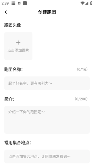 在创建跑团页面填写相关信息,然后点击创建按钮即可完成操作。