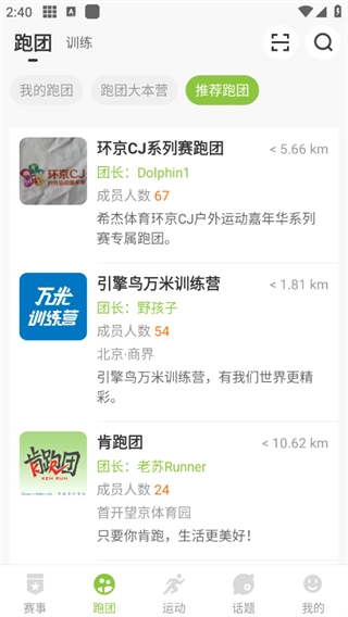 加入跑团,与团员共同成长,共同分享跑步乐趣;