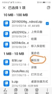 最后选择把压缩文件解压到“默认目录”(也就是内部存储的根目录),这样就完成了这个压缩文件的解压步骤。